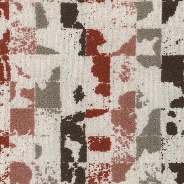 GAUDI wyróżnia się geometrycznym wzorem inspirowanym stylem retro i mid-century oraz wyraźną, lekko pętelkową strukturą, która nadaje materiałowi dekoracyjny charakter.